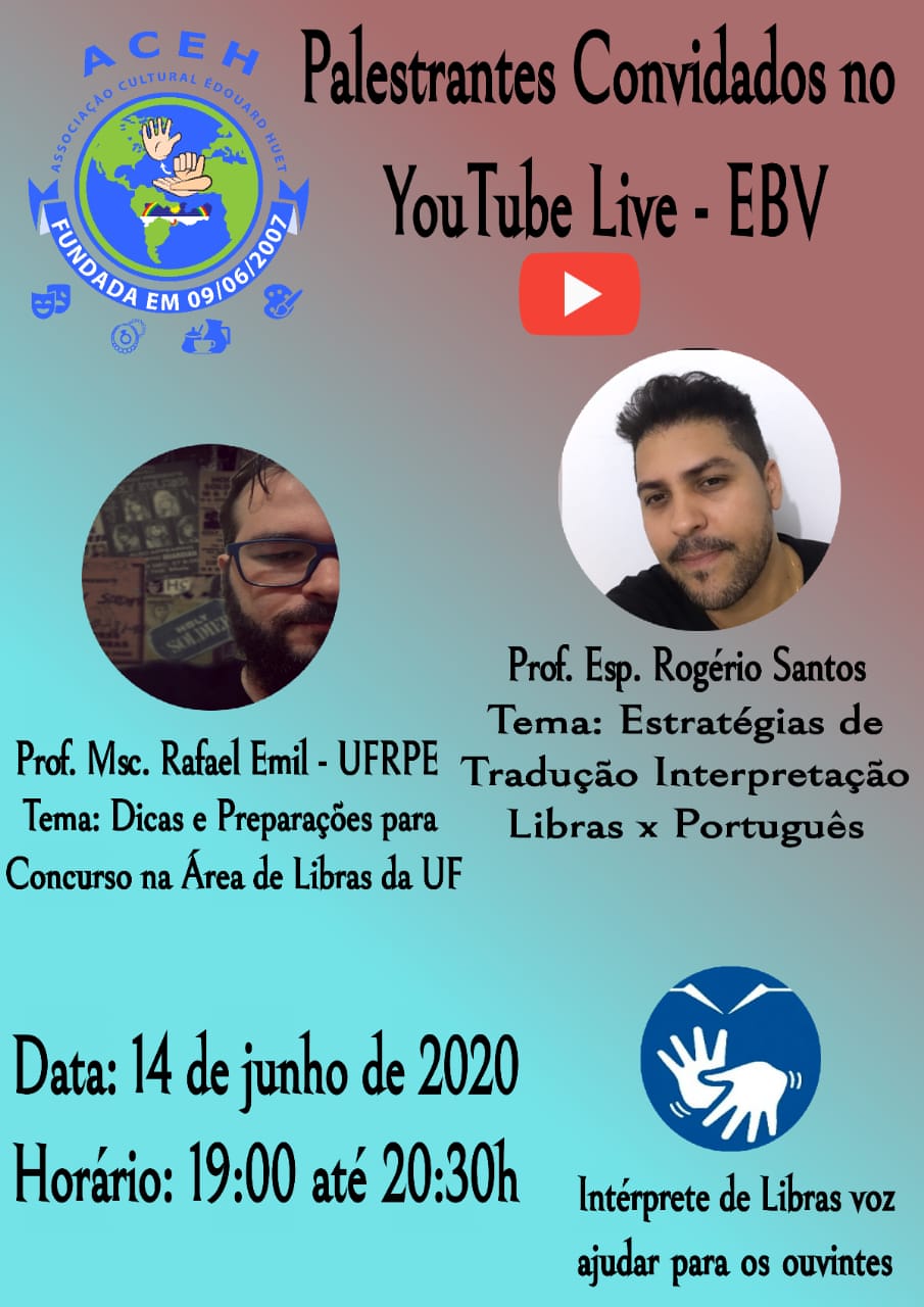 Palestrantes Convidados no Youtube Live - EBV - 14/06/2020